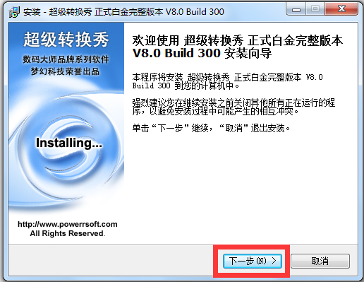 1、下载软件压缩包文件,首先点击“超级转换秀 V8.0.exe”安装好原版。同意协议、选择安装地址后,就可以点击安装。