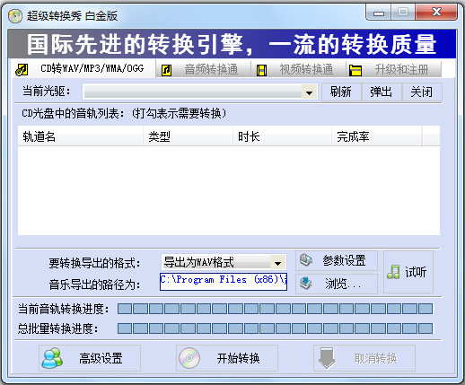 1、支持将CD音乐直接转换为WAV/MP3/WMA/OGG等数字音乐,并支持按用户喜好选择各种转换参数,支持批量转换处理,支持多光驱