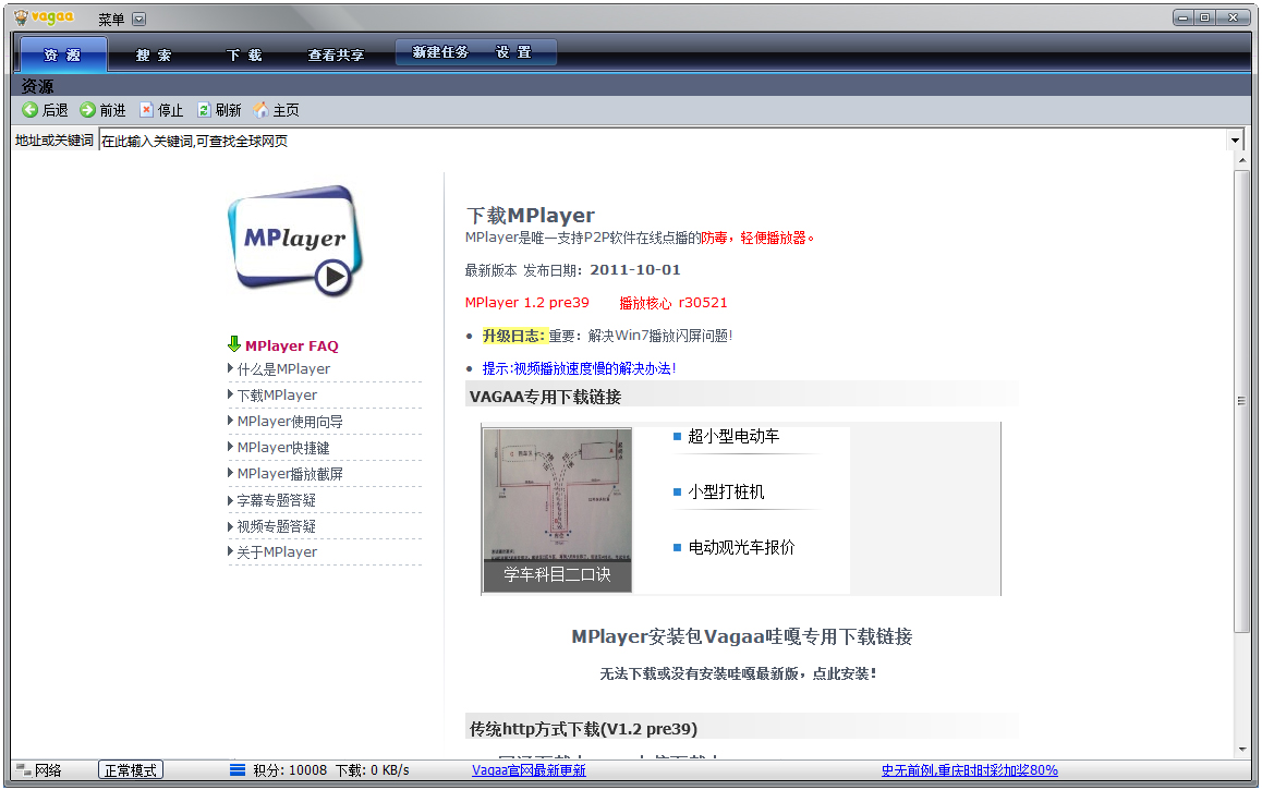 如果您的机器没有装Real或AVI解码器,那么只需要下载哇嘎播播增强版,大小只有15M,仅是暴风影音、KMplayer等播放器大小的一半,但并不逊色于他们(同时支持多达400种影片格式)。更可贵的是,您可以访问哇嘎播播的电影网站,在线免费观看10万部电影、电视剧、综艺、动漫等。