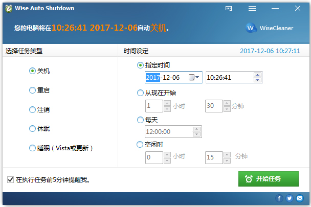 使用Wise Auto Shutdown,您可以安排每天,在确切的时间、某个特定的日期和时间执行任务,或者在任务设置活动的那一刻手动设置的时间之后执行任务。您可以启用提醒,以便在执行任务前5分钟通知您。如果到那时你还有未完成的事情,你可以延迟10分钟或4小时。