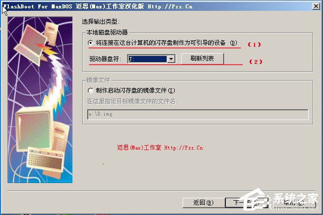 5、然后在下图中选择您的U盘的盘符,如果未找到,请点击“刷新列表”;