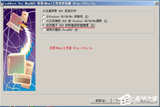 3、请选择您的启动文件来源,如果没有,可以选择“任何基于DOS的软盘或软盘镜像”;