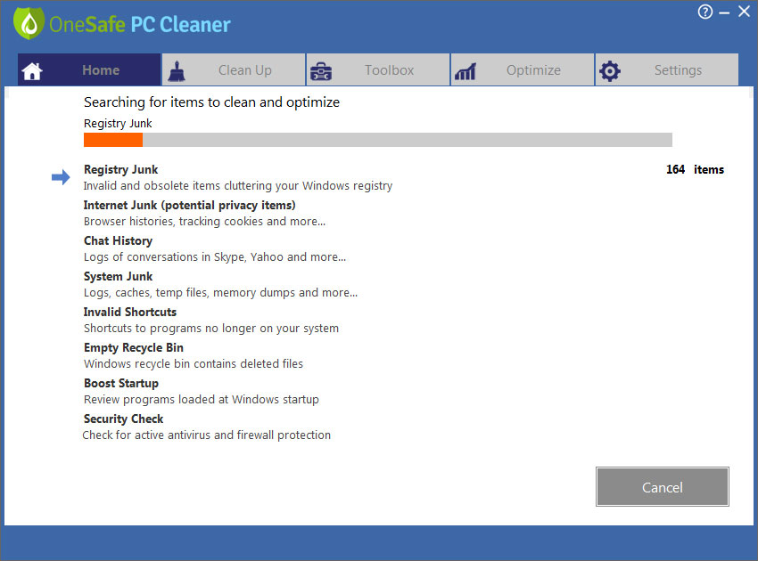 OneSafe PC Cleaner官方版清理检测和过时的注册表数据的元素