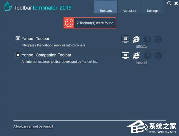 ToolbarTerminator会在每个Windows启动时扫描您的PC上的工具栏,并在一个简洁的仪表板中显示所有这些工具栏,以便您轻松删除它们。它完美地保护您的系统免受不必要的工具栏的侵害