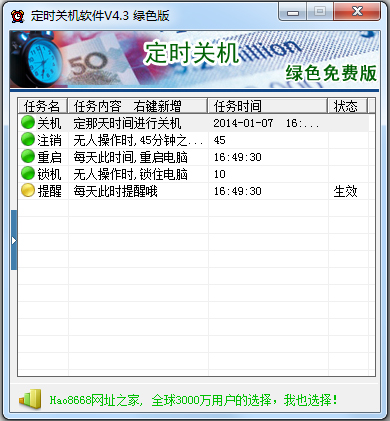 定时关机软件顾名思义就是一款能设置时间让电脑关机的软件,该电脑定时关机软件使用十分简单,我们只需要选择一下时间就可以了,所以有需要的朋友赶紧下载吧!