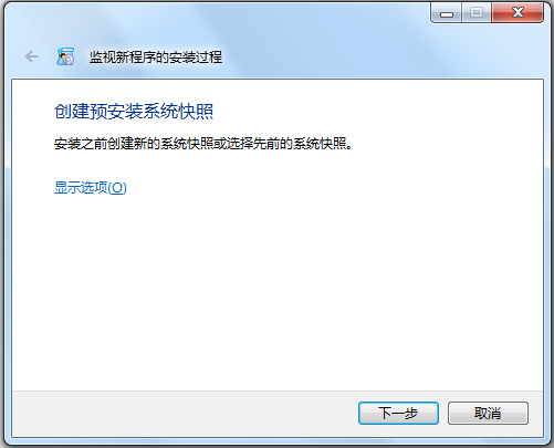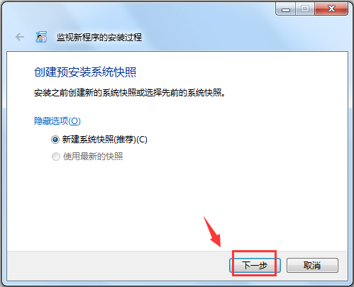 2、启动“监控新程序的安装过程”,下一步。必须使用这个步骤才能将新安装的软件与系统进行对比。