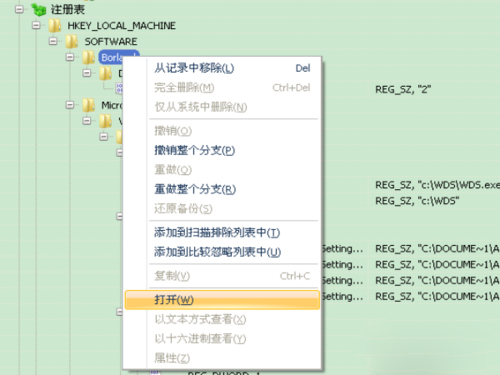 7、在Total Uninstall 软件窗口中,看到新程序增加的所有信息。选择“注册表”项中的信息,用右键打开。