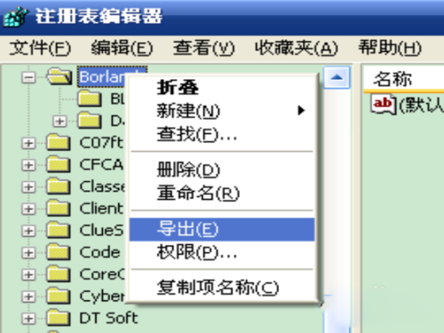 8、直接打开注册表编辑器,并显示所选项。右键导出,将注册表信息保存到“我的文档”。