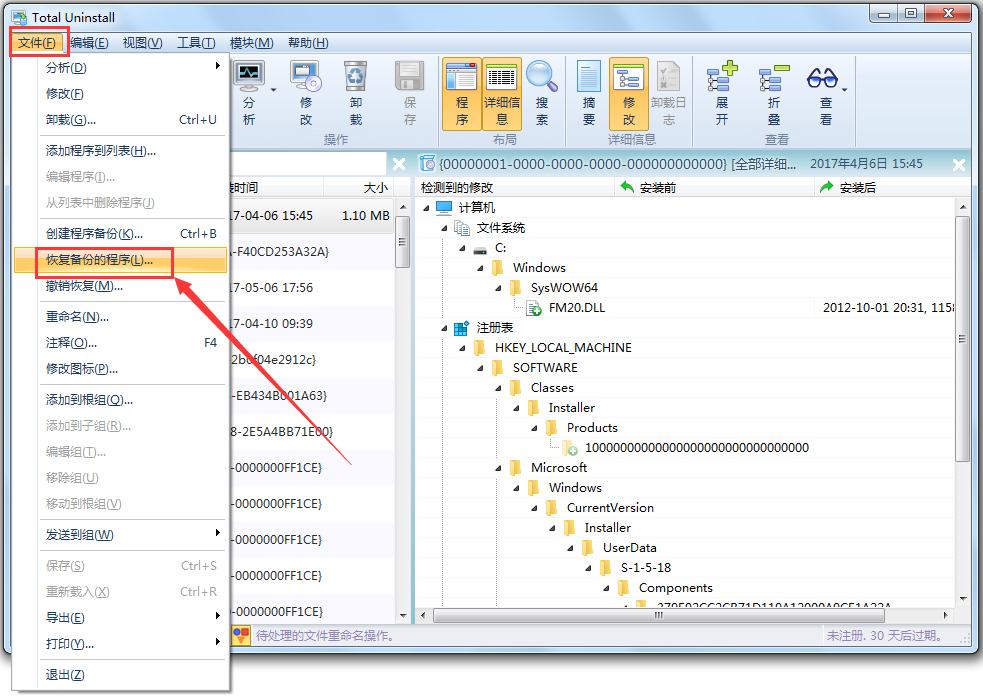 默认情况下,Total Uninstall卸载软件时会创建软件备份包。备份包里有软件安装文件,注册表信息。