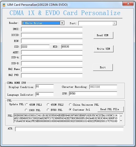 1.运行UIM卡备份软件绿色版“UIMCardWriter-EVDO”