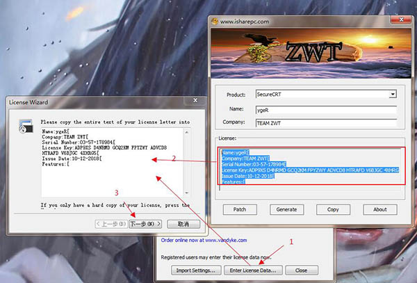 4、安装完成后将数据包中的注册机复制到C:Program FilesVanDyke SoftwareClients目录下并运行,点击patch
