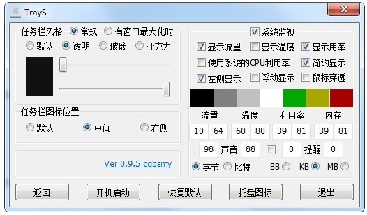 TrayS软件是一款超级小巧的任务栏美化工具哦!你只要按照自己的喜好调整一下系统任务栏的样式,就能换出各种不同的风格啦!而且,它还能帮你实时监控系统参数,比如网速、温度什么的,超方便哒!