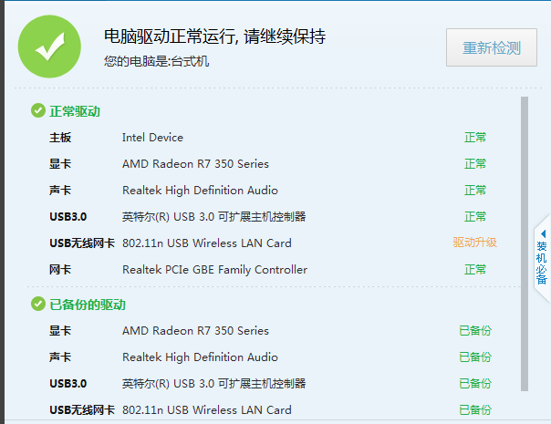 2、耐心等待检测完成。检测完成后,会显示电脑上所有的驱动
