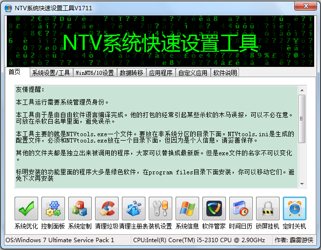 NTV系统快速设置工具 V1711 绿色版