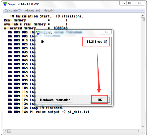 Super PI 用计算圆周率来测试cpu运算速度的工具,提供了12种不同的次来测试,测试结果会显不在一个pi_data.txt的文村文件中,总共会为你计划13次。