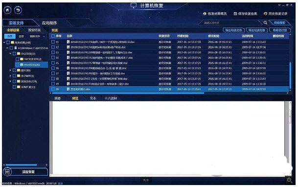 【4】选择完成后,点击快速恢复,稍等片刻恢复完成后在左侧恢复结果树中的“办公文档”→“Word文档”节点即可找到恢复成功的“美亚柏科简介。doc”文档,且可正常预览和导出