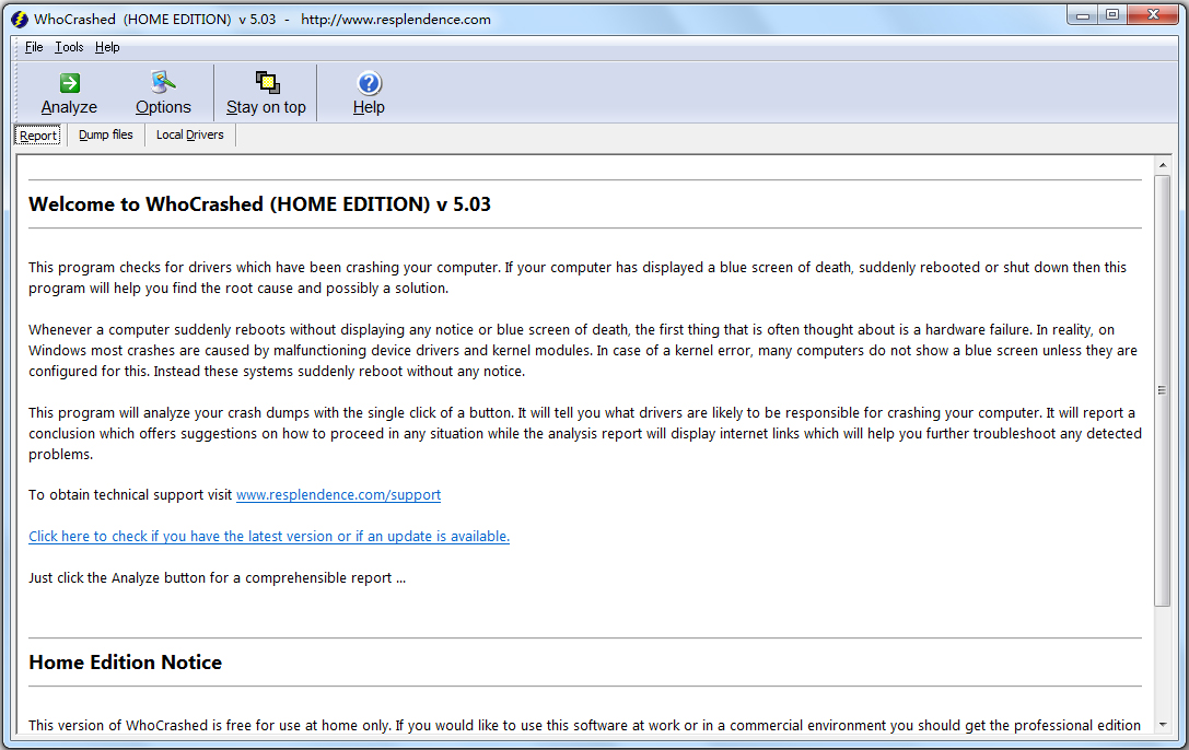 WhoCrashed(蓝屏修复工具) V5.03 英文绿色版