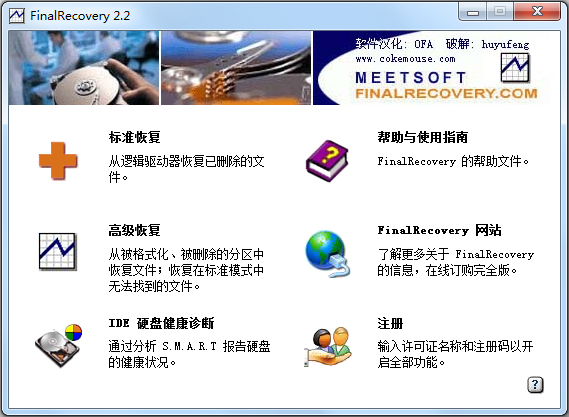 FinalRecovery主要用于硬盘中丢失数据的恢复操作,可以有效地恢复误删除的、格式化的、重新分区等类型的数据,支持FAT12,FAT16,FAT32和NTFS等分区系统。FinalRecovery拥有着直观的用户界面,只需要按照提示操作就可以对数据进行恢复了。