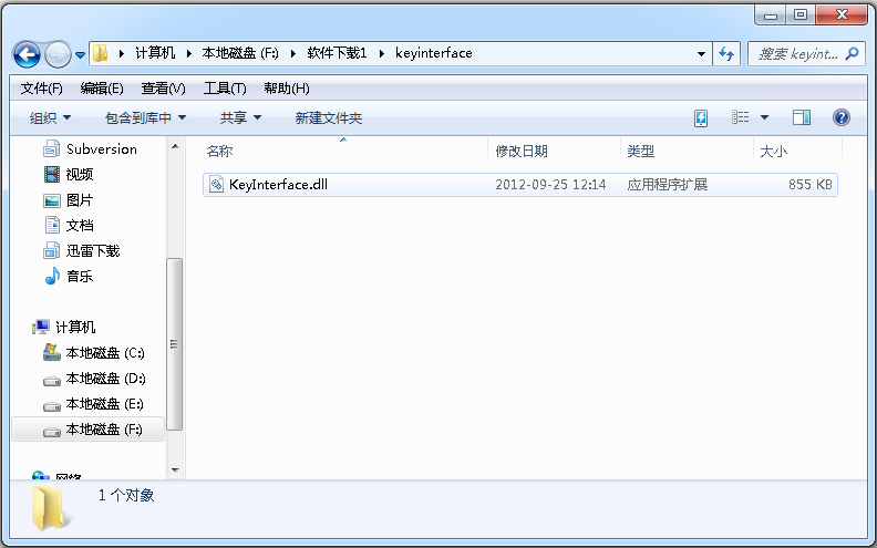 2、复制文件“keyinterface.dll”到系统目录下;