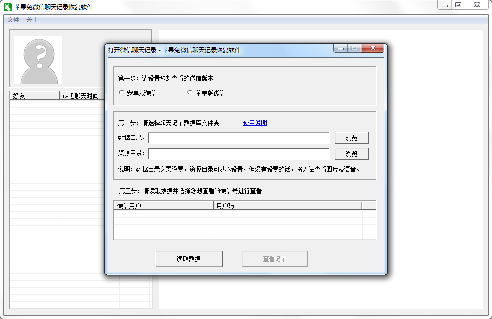 苹果兔微信聊天记录恢复软件是一款专业的微信聊天记录恢复工具,苹果兔微信聊天记录恢复软件能够导出所有安卓手机及苹果手机微信聊天内容到电脑上查看,除了查看文字聊天内容外,还可浏览收发的图片,及播放收发的音频或视频内容。更重要的是,该软件能够恢复iPhone手机上误删除的微信聊天记录,欢迎大家下载使用。