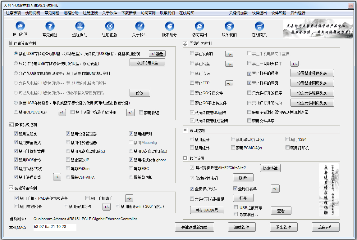 大势至USB端口控制管理软件 V8.1 试用版
