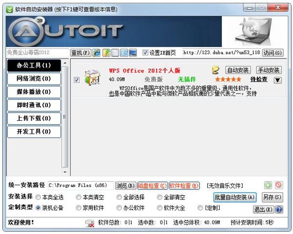 软件自动安装器,软件批量安装工具,可以为我们节省许多时间,通过配置文件封装应用程序而实现批量软件安装,操作简单,使用方便,拥有多种选择,提供装机必备,家用软件,办公软件等各种定制分类,此外你也可以自由定制,随心所欲。