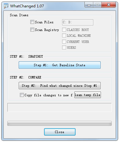 whatchanged(文件比较工具)是款功能强大的系统文件比较工具。文件比较工具(whatchanged)通过扫描修改过的文件和注册表项,来检测程序安装是否有用,采用“穷举法”来检测,让你能够清楚知道系统文件和注册表是否变化。