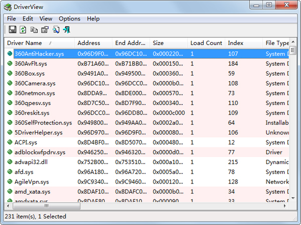 DriverView(显示设备驱动程序列表) V1.47 英文绿色版