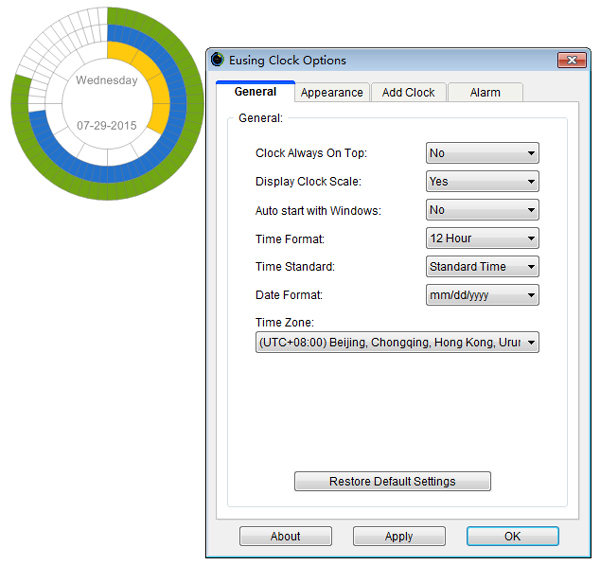 桌面时钟提醒(Eusing Clock) V2.3 绿色版