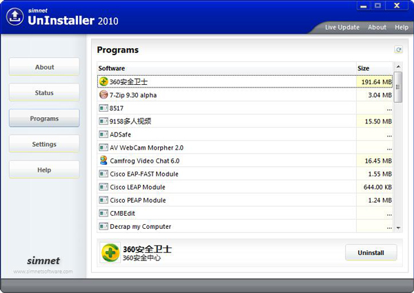Simnet UnInstaller2010(软件卸载工具) V2.4.5.1 绿色版