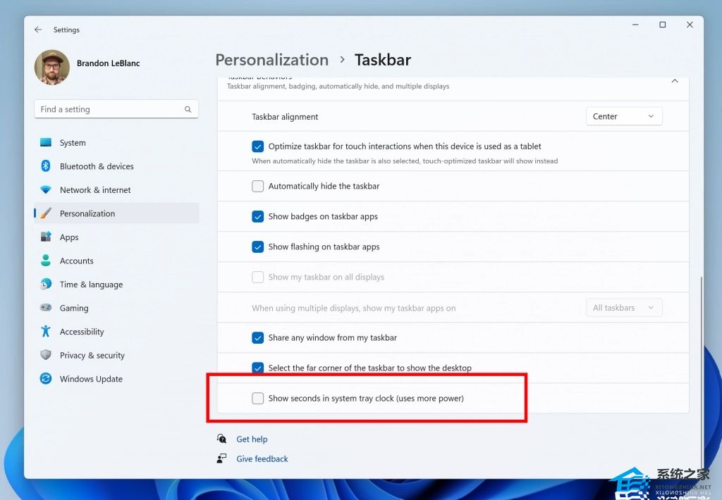 作为对用户反馈的回应,微软引入了在系统托盘的时钟中显示秒数的功能。可以通过切换“任务栏”部分中“设置”>“个性化”>“任务栏”下列出的选项来启用此功能。您也可以右键单击任务栏以快速进入任务栏设置。微软正开始推出此更改,因此并非所有 Windows 预览体验成员都会立即看到此更改,但希望尽快将其提供给所有人。