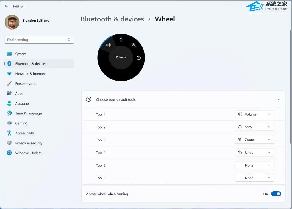 此外,“蓝牙和设备”部分中包含 Surface Dial 等设备设置的“Wheel”页面与 Windows 11 新设计语言相匹配。