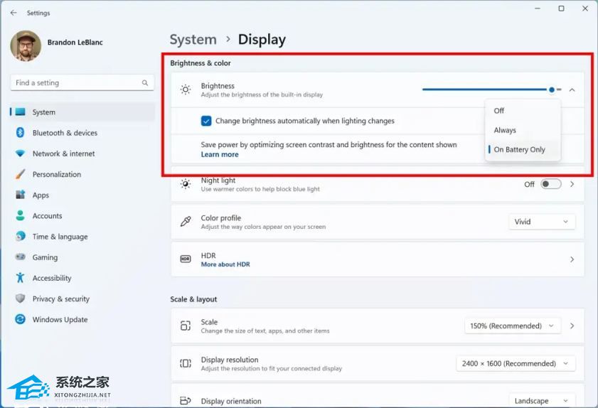 从这次飞行开始,Windows 11 将允许内容自适应亮度控制功能在插入充电器的笔记本电脑和敞篷车等设备以及台式机上运行。