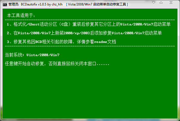 BCDautofix(双系统启动菜单自动修复工具) V1.0.5 绿色版