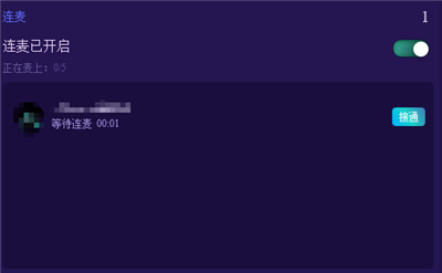 1. 开启及关闭连麦,点击该滑块可以开启及关闭连麦