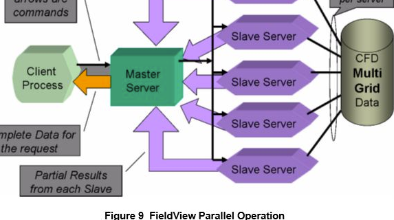 客户端是用来传递命令的主/从服务器,并接收信息的是下图所示。在这个时候,唯一的数据格式的支持是多重网格fv-uns,FLOW-3D,OpenFOAM,溢出,Plot3D数据集或数据集。