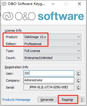 6、将注册机文件下的注册机复制到软件文件下,打开注册机keygen,product选择DiskImage 15.x,Edition选择Professional点击Register即可;