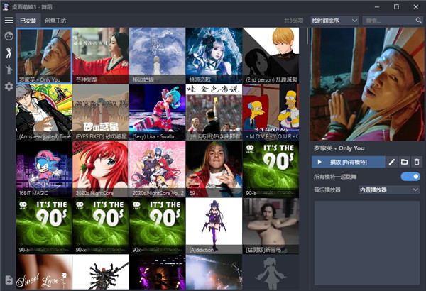 12、内置60款舞蹈模板(19款慢节奏/15款中等节奏/17款快节奏/8款短舞/月步舞),一键为您喜爱的音乐选配适合的舞蹈;支持将VMD舞蹈动作转换后导入。