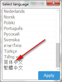 下载解压后双击“CopyTransManager.exe”文件,下拉滚动条,选择简体中文,单击apply即可进入中文界面。