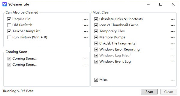 SCleaner Lite(一键式系统清洁器) V0.5 官方版