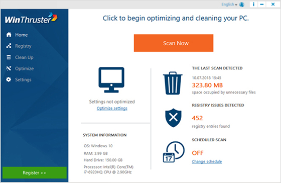 WinThruster系统优化软件是非常好用的电脑修复和优化软件,当您用 WinThruster 扫描您的个人计算机时,您的系统也得到优化,它拥有丰富全面的功能,为用户提供各种实用的系统修复和优化工具,解决电脑系统中存在的各种问题,让你的电脑清爽且明晰,恢复本来面目。轻松提升电脑系统的性能和运行效率,从而给用户带来更好的使用体验。