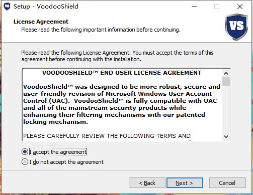 安装向导默认设置的软件默认安装路径为C:Program FilesVoodooShield。