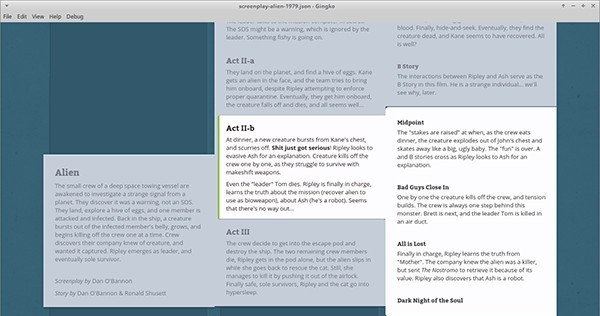 Gingko是一款非常优秀实用的电脑写作软件,借助树状结构帮助用户梳理人物关系和大纲,并且支持markdown格式,让你的页面排版更美观。软件支持多人协作,可以一起工作一起编码,写作灵感更丰富,创作出更完美的作品。