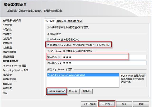 12、选择混合模式登录,输入密码,选择添加当前用户;