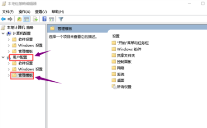 3、进入组策略编辑器,点击用户配置--管理模板进入。