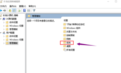 4、在管理模板右侧双击系统文件夹。