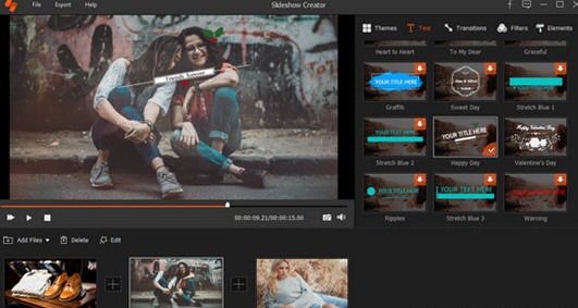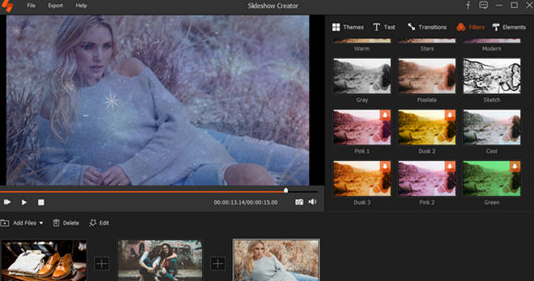 选择您喜欢的主题,添加元素,文本,选择过渡效果和过滤器。