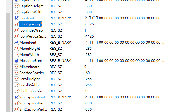 3、分别双击右侧的IconSpacing(水平方向)与conVerticalSpacing(垂直方向)两个项目,数据均设置为-1125 ,点击确定保存设置,最后重启即可。